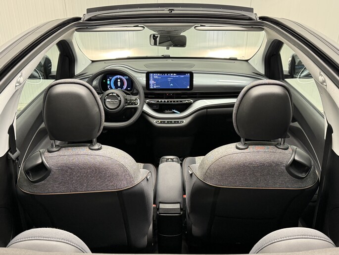 Verken de digitale wereld van mobiliteit waar het digitale dashboard alles biedt wat u nodig heeft om uw reis comfortabel te maken. Connected Services zorgen ervoor dat de belangrijkste functies en data van de auto altijd en overal te checken zijn. Gewoon via de app op de smartphone. De automatische airconditioning zorgt voor een behaaglijk klimaat in de auto. Parkeerplekken worden er niet ruimer op. Maar met de aanwezige parkeersensoren krijgt u deze Fiat 500e C zonder problemen op z'n plaats. Natuurlijk is een complete auto als deze ook voorzien van sensoren die de omgeving in de gaten houden. Deze Fiat heeft niet alleen een automatisch inschakelbare verlichting aan boord, maar ook een regensensor. Met full map navigatiesysteem, DAB ontvangst, cruise control, keyless entry, lederen stuur en isofix-aansluiting is deze auto helemaal compleet.