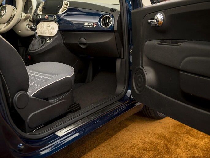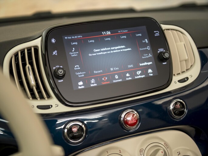 Mooie Kleur en Uitvoering: Deze Fiat 500 C is een echte blikvanger dankzij de zeldzame en chique kleurencombinatie: een diepe donkerblauwe carrosserie gecombineerd met een elegante beige softtop. Het interieur sluit hier naadloos op aan, wat zorgt voor een harmonieus en verfijnd geheel. De cabrio-uitvoering biedt de mogelijkheid om met één druk op de knop van de zon te genieten.
