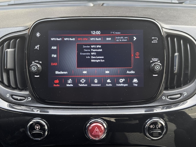 Kom-maar-kom-maar...ho! Zo eenvoudig is het voordeel van parkeersensoren. En zo behulpzaam! Het drukke verkeer eist onderweg al uw aandacht op. Daarom is het goed dat deze Fiat is voorzien van diverse systemen die u assisteren tijdens de rit. Een automatisch inschakelbare verlichting neemt het waar als het donker wordt of gaat schemeren, en schakelt dan automatisch de verlichting in. Op dezelfde manier "ziet" de regensensor de eerste spatjes regen en schakelt dan de ruitenwissers in, en als het harder gaat regenen zet hij de ruitenwissers ook in een snellere stand. De cruise control zorgt voor zorgeloos, ontspannen en zuinig rijgedrag. Het spreekt voor zich dat u in deze auto ook airconditioning aantreft. Extra opties op deze auto zijn: DAB ontvangst, lederen stuur, centrale deurvergrendeling met afstandsbediening, boordcomputer en lederen versnellingspook.