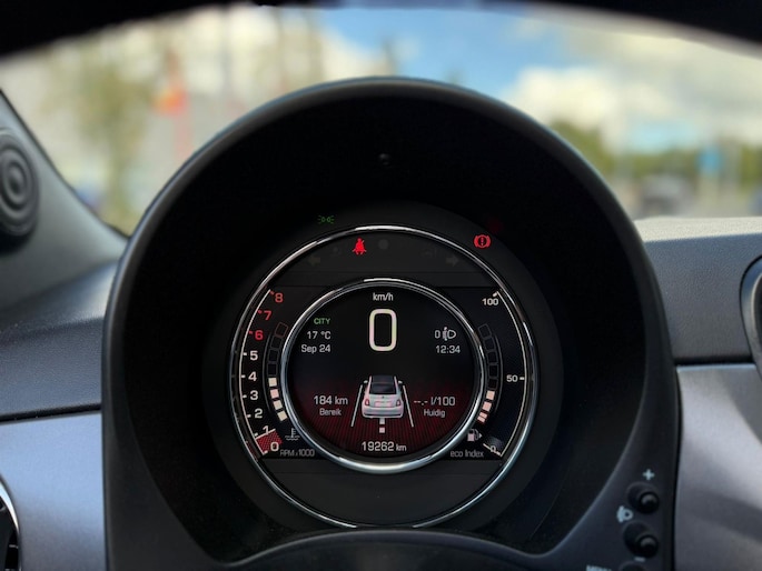 Je leest alle belangrijke functies helder af dankzij het digitale dashboard. Natuurlijk is er ook automatische airconditioning aanwezig. Liever gepiep dan gekraak? Dan zul je blij zijn met de aanwezige parkeersensoren! Het drukke verkeer eist onderweg al jouw aandacht op. Daarom is het goed dat deze Fiat is voorzien van diverse systemen die je assisteren tijdens de rit. Een automatisch inschakelbare verlichting neemt het waar als het donker wordt of gaat schemeren, en schakelt dan automatisch de verlichting in. Op dezelfde manier "ziet" de regensensor de eerste spatjes regen en schakelt dan de ruitenwissers in, en als het harder gaat regenen zet hij de ruitenwissers ook in een snellere stand. Met de cruise control kan je zorgen dat je op die rechte stukken toch uit beeld blijft bij de flitsers. En dan is deze auto ook nog eens voorzien van DAB ontvangst, lederen stuur, centrale deurvergrendeling met afstandsbediening en boordcomputer.