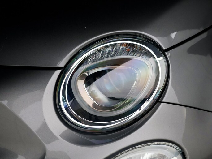 Binnenin overheerst een sfeervolle combinatie van retrodetails en moderne technologie. De two-tone bekleding, het crème stuurwiel en de chromen afwerking creëren een warme ambiance. De bediening is overzichtelijk en gebruiksvriendelijk, met voorzieningen zoals airconditioning, het infotainmentsysteem, Bluetooth en stuurwielbediening. Dankzij het elektrisch bedienbare cabriodak kun je op elk gewenst moment de buitenlucht naar binnen halen, van een kleine opening tot volledig open voor optimaal zomergevoel. Deze uitvoering is extra compleet door de Star-uitrusting met fraaie lichtmetalen velgen en stijlvolle buitenaccenten.