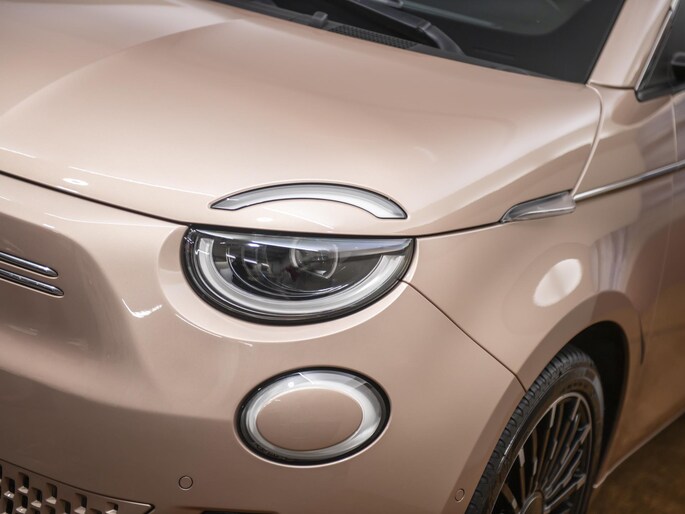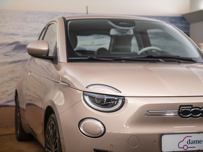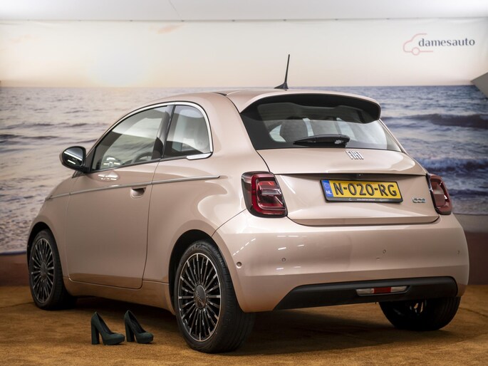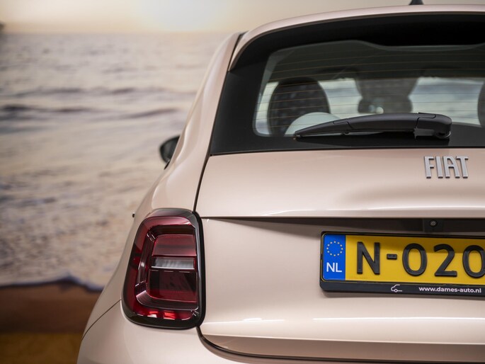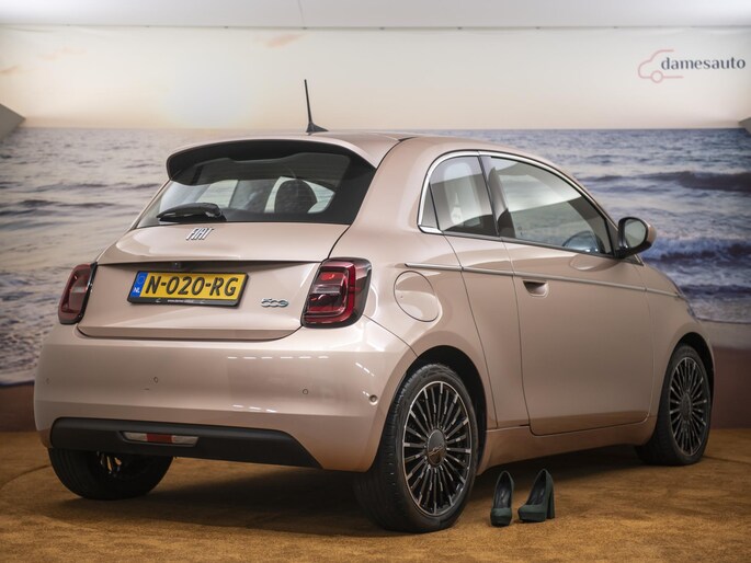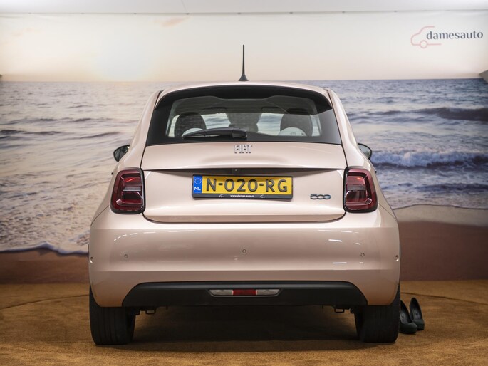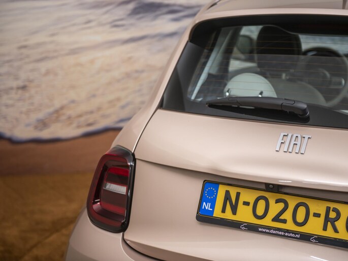 Nieuw binnen: En hele chique Fiat 500E La Prima 42 kWh in de ultieme 500 kleur: Rose Gold. Deze prachtige auto heeft alles wat we van een auto mogen verwachten. Het interieur biedt volop ruimte voor u en uw gezin en de pittige motor staat garant voor uitstekende prestaties. Een elektrische auto is echt niet meer alleen voor korte ritjes. Het rijbereik van deze auto biedt voldoende ruimte voor uw dagelijkse ritten. Een prachtige auto vol met luxe! Als eyecatcher noemen we de volledig lederen bekleding in prachtig ivoor uitgevoerd en natuurlijk die ultieme Fiat 500 kleur: Rose Gold. Deze auto wordt gecompleteerd door onder meer 17 inch lichtmetalen velgen, LED koplampen, in delen neerklapbare achterbank, LED-achterlichten, elektrisch bedienbare en verwarmde buitenspiegels en snelheidsafhankelijke stuurbekrachtiging. Het digitale dashboard in deze auto maakt personalisatie van uw cockpitinterface mogelijk. Bij het inparkeren hoeft u het laatste stukje niet te gokken: de achteruitrijcamera kijkt voor u uit. Met adaptive cruise control houdt deze auto automatisch afstand tot uw voorligger. Communiceren met uw auto? Dat gaat via remote services. Met uw smartphone maakt u waar dan ook contact om allerlei functies te checken of te activeren. U weet altijd waar u moet zijn, dankzij het navigatiesysteem. Met automatische airconditioning, draadloos opladen, DAB ontvangst, regensensor, keyless entry en automatisch dimmende binnenspiegel is deze Fiat helemaal compleet. Deze auto is voorzien van innovatieve systemen die u onderweg begeleiden en beschermen. Belangrijk voor uw veiligheid en die van uw passagiers zijn de Full Led projector koplampen en de verkeersbord-detectie in deze auto. Met het Lane-keeping systeem komt u nooit per ongeluk buiten de rijstrook. Vindt u dit lastig? Dan kunt u het uitschakelen. Op lange ritten voorkomt de vermoeidheidsassistent dat uw concentratie afneemt. In deze Fiat vinden we verder een dodehoekdetectie, brake assist en bandenspanningcontrolesysteem. U krijgt van ons 6 maanden garantie zodat u zorgeloos de weg op kunt. Tevens is er de mogelijkheid om de garantie uit te breiden. Wie eenmaal elektrisch heeft gereden, wil niet anders meer. Dus bel ons voor een afspraak en raak in één keer verliefd op deze chique dame!