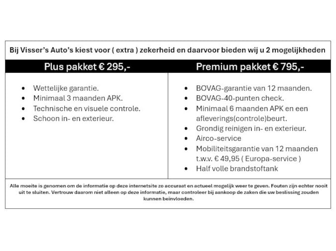 Bij Visser’s Auto’s kiest voor ( extra ) zekerheid en daarvoor bieden wij u 2 mogelijkheden