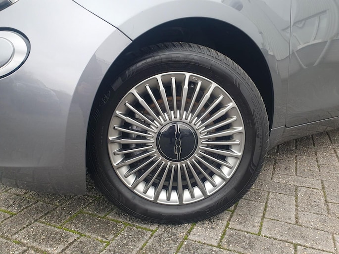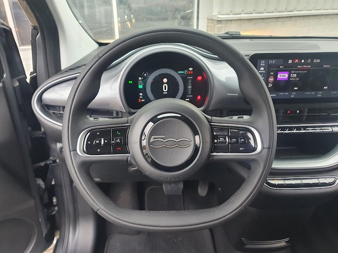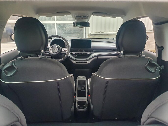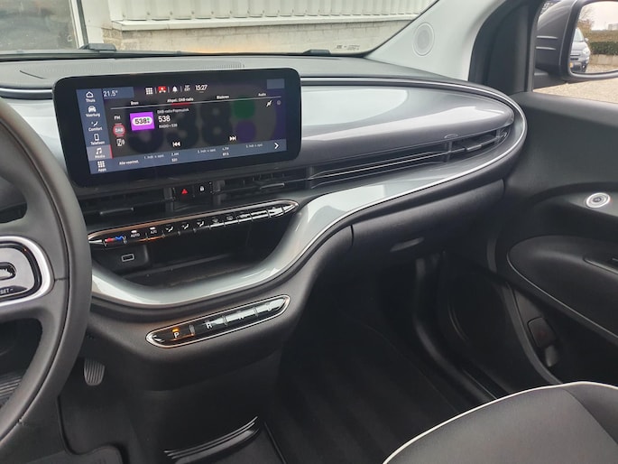 Bovenstaande Fiat 500e Icon 3+1 betreft een compleet vernieuwde elektrische uitvoering van de 500. Deze auto is uitgevoerd met zwaarste accupakket, namelijk een 42 kWh die een actieradius tot 321 km kan behalen met een topsnelheid van 150 km/h. De 3+1 variant beschikt over een extra deur aan de bijrijderskant, wat voor een betere toegang tot de achterbank zorgt. Het voertuig beschikt over elektrische ramen en spiegels, 7" multimediasysteem met Apple Carplay/Dab radio, centrale vergrendeling, virtuele cockpit, spraakbesturing, lederen stuur met stuurbediening, cruise control met lane-assist, verschillende rijmodussen, led-verlichting, keyless entry, isofix, autonomous braking, spiegels in de lakkleur, climate control, 16 inch originele aluminium velgen en 2 oplaadkabels.