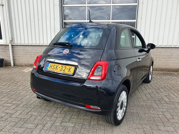 Bovenstaande Fiat 500 Hybrid Lounge betreft een nieuw model, waardoor de auto zowel van binnen als van buiten optisch en technisch is vernieuwd ten opzichte van het vorige model. De auto is uitgevoerd met een 1.0 benzine, 3-cilinder motor die een vermogen levert van 69 pk. Het voertuig beschikt over elektrische ramen en spiegels, lounge bekleding, 7" Uconnect multimedia systeem met Apple Carplay/Android Auto, bluetooth & DAB radio, centrale vergrendeling, cruise control, led-boordcomputer met vernieuwde opties zoals o.a. bandenspanningsmeter, lederen stuur met stuurbediening, start/stop systeem, City stuur (wat zorgt voor een dubbele stuurbekrachtiging), ESP, isofix, led dagrijverlichting en 15 inch originele aluminium velgen met zomerbanden.