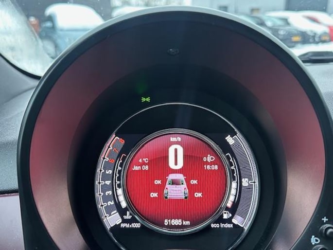 Een Fiat 500 met ‘star quality’ mogen we wel zeggen. Uitstekend onderhouden - vier beurten bij de officiële dealer - een schitterende kleur rosé metallic, een werkelijk prachtig interieur en volop luxe! Van carplay tot cruise control, van 16 inch tot uitgebreid chroompakket en extra getint glas. En natuurlijk is voorzien in airco, elektrische ramen, perfecte audio en méér. Je zou er bijna sterretjes van gaan zien ;-)