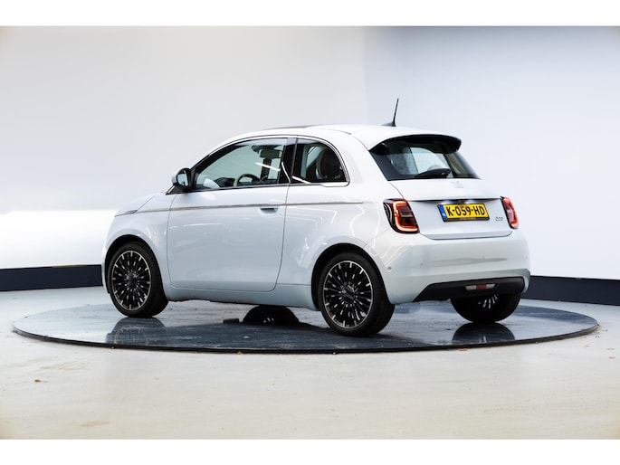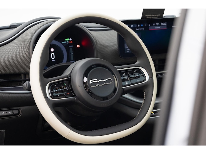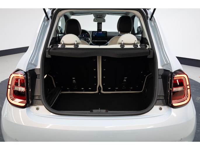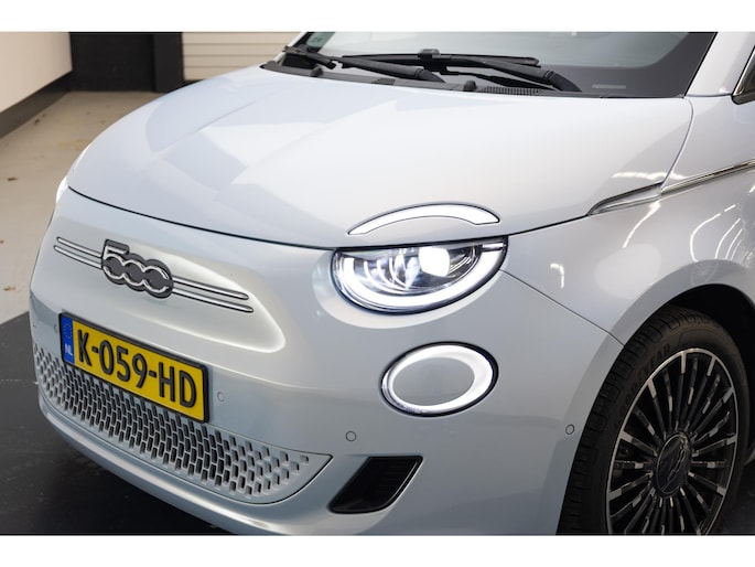 Fiat heeft de auto opnieuw uitgevonden. De volledig elektrische Fiat 500 is duurzaam, maar biedt tegelijk veel rijcomfort en geweldige prestaties. Met de elektromotor zoef je fluisterzacht over de weg. Lederen bekleding is een smaakvolle en comfortverhogende optie. Het interieur baadt in een zee van licht door het glazen panoramadak. Verder is de Fiat uitgerust met: 17 inch lichtmetalen velgen, LED koplampen, in delen neerklapbare achterbank, LED-achterlichten en snelheidsafhankelijke stuurbekrachtiging.
