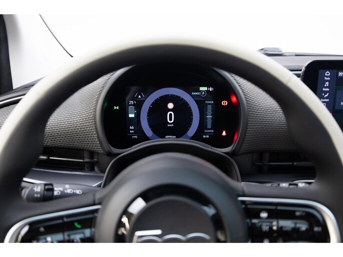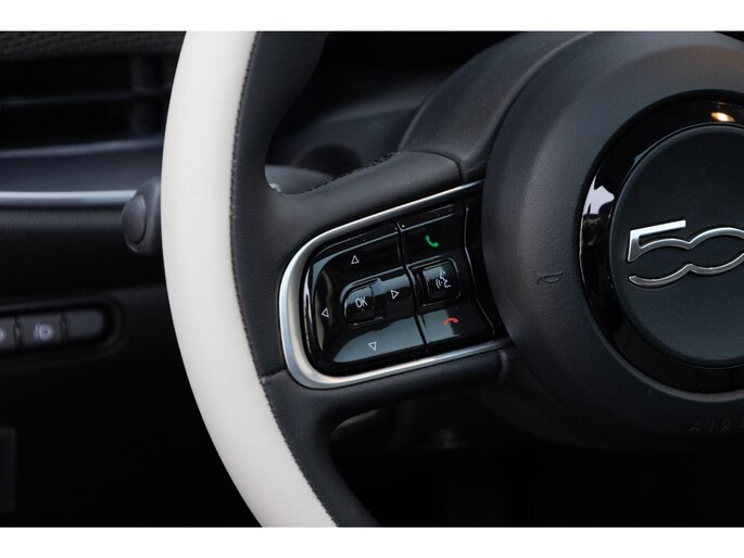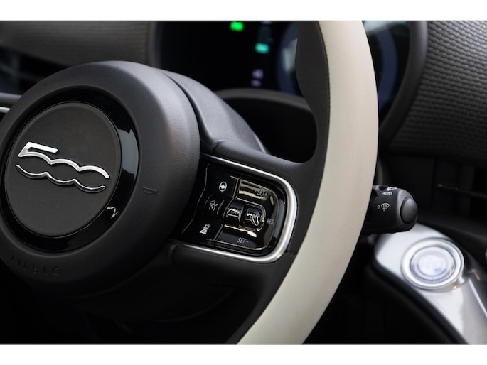 Een handige optie is de achteruitrijcamera. Achteruitrijden, inparkeren en manoeuvreren gaat gemakkelijker dan ooit. Met adaptive cruise control houdt deze auto automatisch afstand tot jouw voorligger. Pech of storing, altijd vervelend. Maar met Connected Services weet je direct wat eraan scheelt. En dus ook wat er moet gebeuren. In deze 500 vind jij schakelaars op het stuur om het full map navigatiesysteem te bedienen en het audiosysteem met DAB-ontvangst. Zoals van een eigentijdse auto verwacht mag worden, is deze Fiat 500 voorzien van een draadloze oplaadmogelijkheid voor telefoons. De uitrusting van deze Fiat is met automatische airconditioning, regensensor, keyless entry, automatisch dimmende binnenspiegel en lederen stuur behoorlijk compleet.