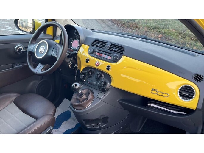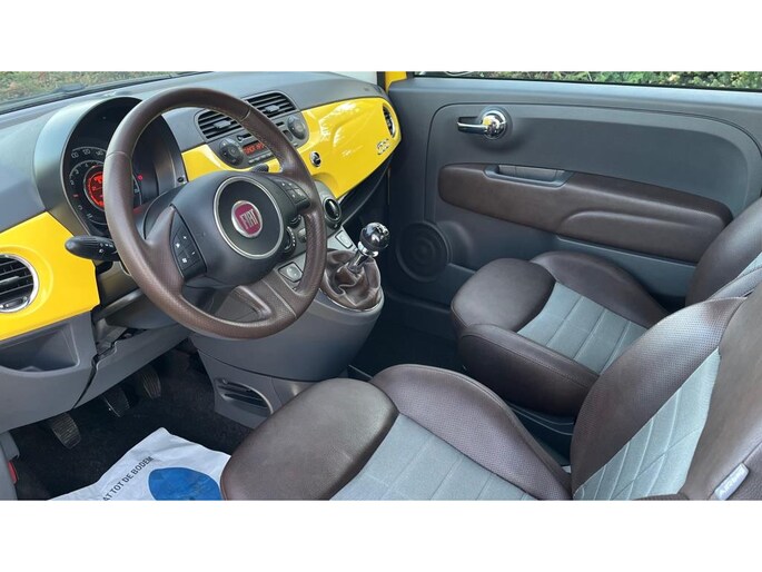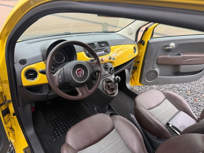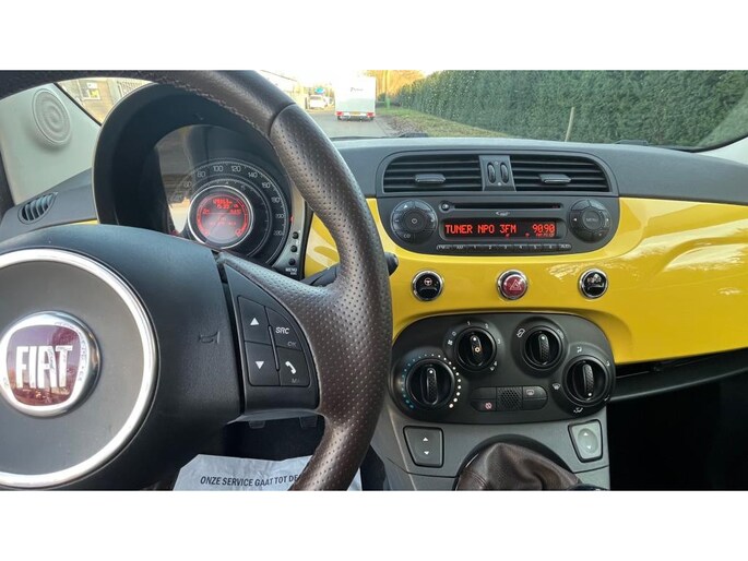 Leuke Fiat 500 1.2 Lounge ''Sport'' uitvoering. (69PK). Deze Fiat is voorzien van o.a. Lichtmetalen Velgen, Dakspoiler, Het interieur is voorzien van Half Leder/stof bekleding, Airconditioning, Multifunctioneel Stuurwiel, Electr. pakket en Privat Glass.