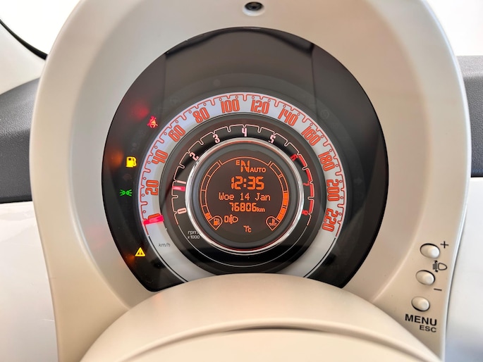 Hij verloochent zijn Italiaanse roots niet, deze Fiat 500 is een genot om te rijden en bovendien een elegante verschijning. De aandrijving van deze Fiat wordt verzorgd door een viercilinder motor en een handgeschakelde versnellingsbak. Een deel van de uitlaatgassen in de lucht komt van stilstaande auto's in de file. Daarom is deze Fiat 500 voorzien van een start-stop systeem dat automatisch regelt dat de motor alleen draait voor de voortstuwing. Staat u vast? Dan gaat de motor vanzelf uit. Rijden? Dan gaat-ie direct weer aan.
