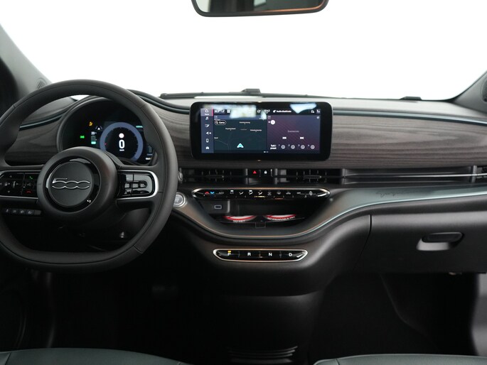 Hij is doordacht innovatief en duurzaam als geen ander: de elektrische Fiat 500e biedt met zijn elektrische aandrijving een ongekende rijervaring. De elektromotor laat u geluidloos over de weg gaan. Wat een verademing, en zoveel power ook nog! Dit is een splinternieuwe auto, die nu uit voorraad leverbaar is. De R in de maand? Dan is het tijd voor de luxe van de meegeleverde stoelverwarming! Bij de uitrusting van deze auto horen onder meer LED-dagrijverlichting, elektrische handrem en LED-achterlichten. Kommaar-kommaar-kommaar, aldus de achteruitrijcamera. Iedere centimeter vrije ruimte komt haarscherp in beeld. Schadevrij inparkeren maar! Ook het geluid aan boord is top-of-the-line. Het high performance audiosysteem levert superieure prestaties. Automatische airconditioning regelt volautomatisch de temperatuur. U kiest de gewenste temperatuur en het systeem doet de rest. De auto neemt u werk uit handen doordat hij zelf veel in de gaten houdt. Een regensensor en een automatisch inschakelbare verlichting nemen waar wanneer de ruitenwissers en het licht aan moeten. Elektronische veiligheidsvoorzieningen helpen u onderweg om de situatie op de weg te beoordelen. Deze systemen waarschuwen u als er een riskante situatie ontstaat, en kunnen in bepaalde gevallen ook zelf ingrijpen. Een belangrijke bijdrage aan de veiligheid onderweg levert de verkeersbord-detectie. Om te voorkomen dat u tijdens lange ritten achter het stuur in slaap valt, is deze auto voorzien van vermoeidheidsherkenning. Safety First: gaat u onaangekondigd over de lijn van uw rijstrook, dan waarschuwt de lane assist. De veiligheid van deze auto wordt verder verhoogd door dodehoekdetectie en bandenspanningcontrolesysteem. Natuurlijk is dit een splinternieuwe auto en hij wordt dus geleverd met volledige fabrieksgarantie. Daarbij kunnen we u verschillende gunstige financieringsvormen aanbieden. We maken graag een afspraak met u.