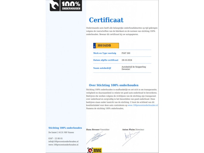 Kilometerstand gecontroleerd
