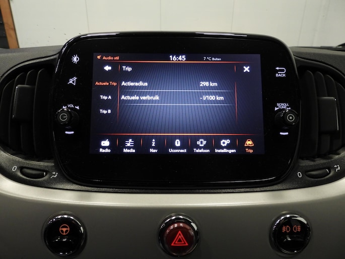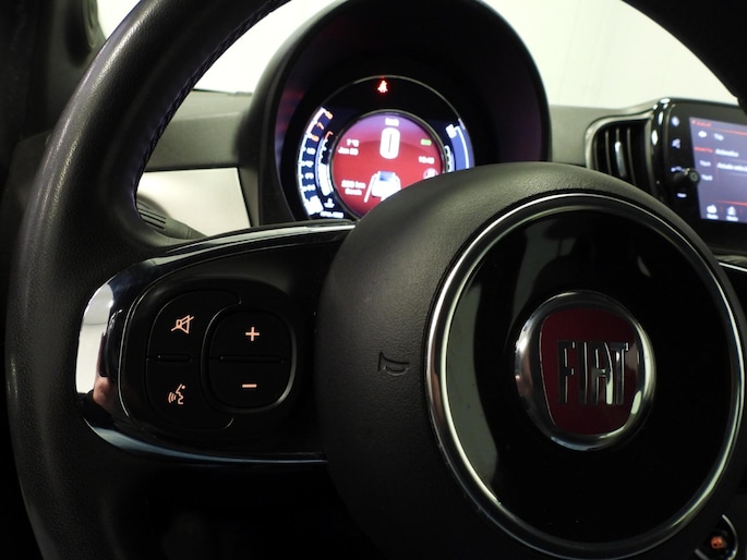 Omdat u nu eenmaal niet overal ogen heeft, is deze Fiat 500C voorzien van een achteropkomend verkeer waarschuwing die registreert wanneer de afstand tot uw achterligger te krap is. Switchen van radiozender of het geluid dempen - het gaat gemakkelijk en veilig dankzij de audiobediening op het stuur. Met de DAB-ontvanger heeft u keuze uit talloze digitale radiozenders met de allerhoogste geluidskwaliteit. Ervaar het comfort van inparkeren met parkeersensoren. Deze auto laat zich moeiteloos in elk parkeervak manoeuvreren. Niet te snel, niet langzaam maar precies goed: laat dat maar over aan de cruise control. Ook airconditioning, isofix-aansluiting en centrale deurvergrendeling met afstandsbediening horen tot de voorzieningen op deze auto.