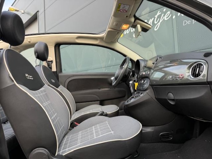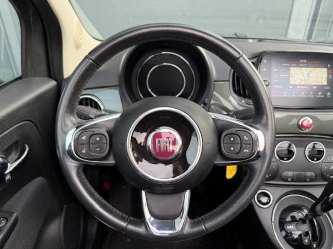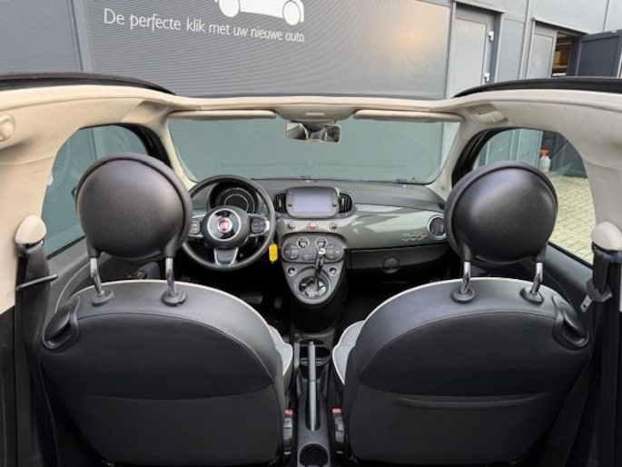 Heerlijk, zo'n Fiat 500 Cabrio met automaat! Da’s ontspannen rijden - mede dankzij het grote scherm met carplay én navigatie, cruise control en climate control. Origineel Nederlandse auto in prima conditie!
