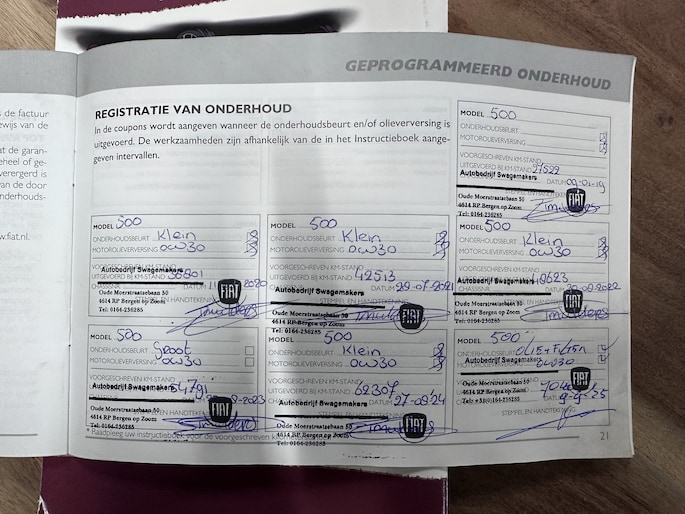 Onderhoudsboekjes: Aanwezig