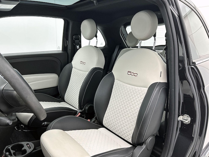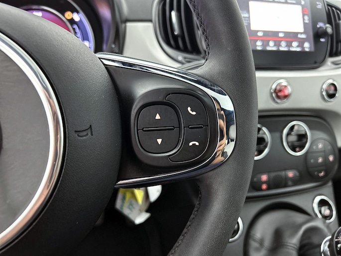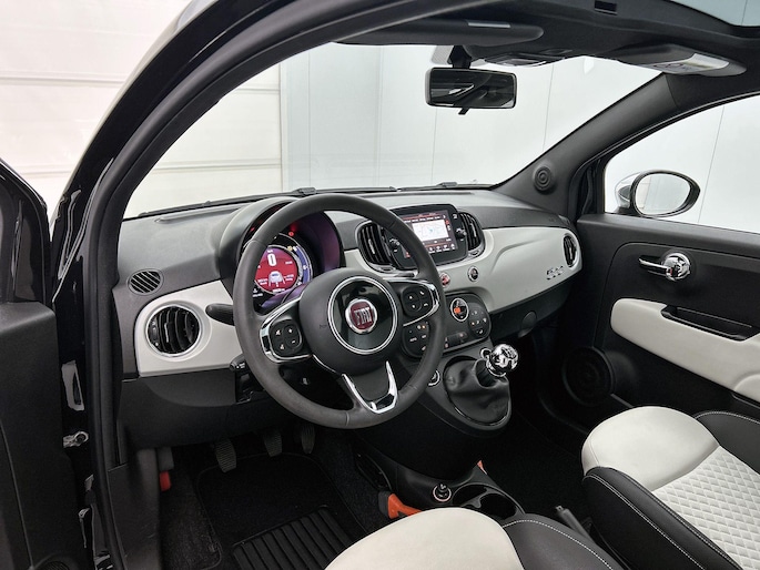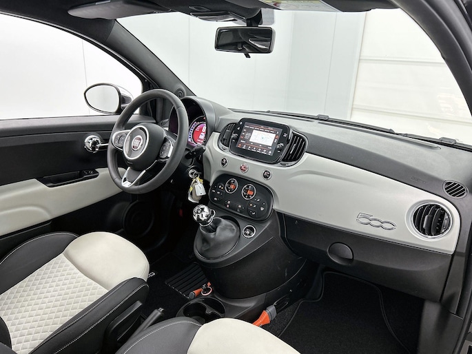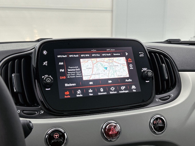 In deze auto beschikt u natuurlijk over een navigatiesysteem. Het audiosysteem met DAB-radio biedt glasheldere geluidskwaliteit. U bedient dit veilig via het stuurwiel. Aan boord van deze Fiat 500 is een achteropkomend verkeer waarschuwing voor extra veiligheid. Het spreekt voor zich dat een auto als deze ook van automatische airconditioning is voorzien. De meeste schade bij inparkeren komt van een randje of paaltje dat u even niet zag. Maar de parkeersensoren zien alles en waarschuwen op tijd. Natuurlijk is deze Fiat 500 voorzien van cruise control. Natuurlijk behoren lederen stuur en centrale deurvergrendeling met afstandsbediening ook tot de uitrusting van deze complete auto.