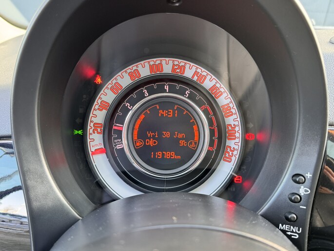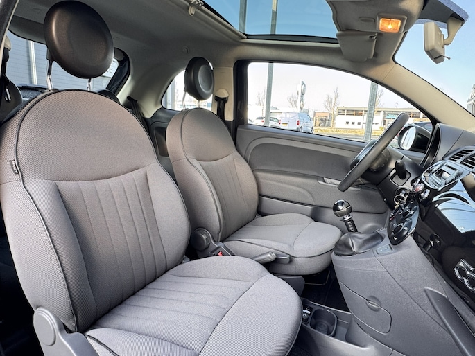 Wendbaar in de stad en soepel op de snelweg. Dat is deze fraai uitgevoerde Fiat 500. Overtuigende prestaties en lekker economisch in gebruik. Onder de motorkap ligt een zuinige tweecilinder benzinemotor. Het glazen panoramadak geeft u een ongekende rijsensatie: wat een licht en zicht! Bij de rijke uitrusting horen ook 16 inch lichtmetalen velgen en in delen neerklapbare achterbank.