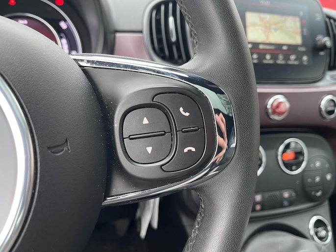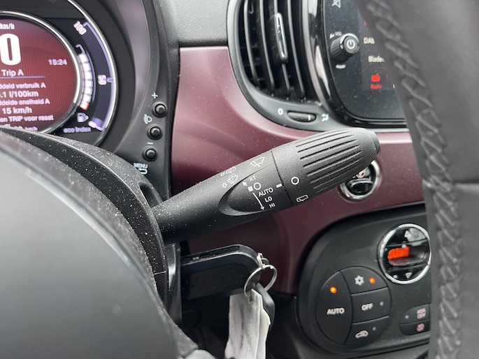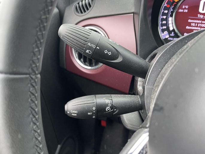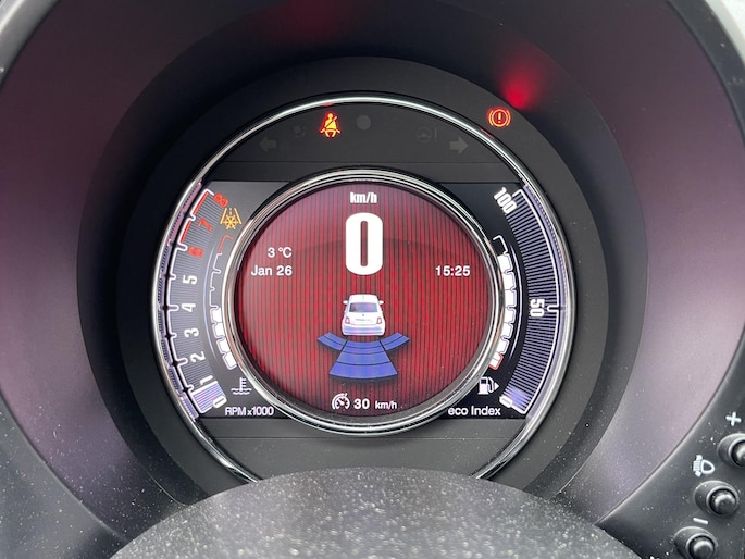 De nieuwste veiligheidssystemen komen in deze Fiat 500 samen. Brake assist herkent een noodsituatie en voert de remdruk op om de remweg te verkorten.