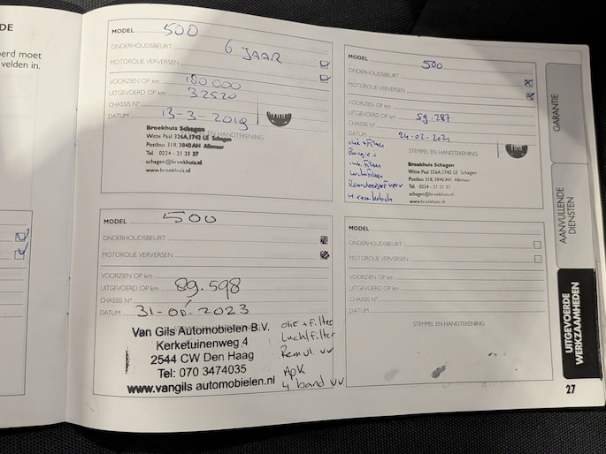 Onderhoudsboekjes: Aanwezig