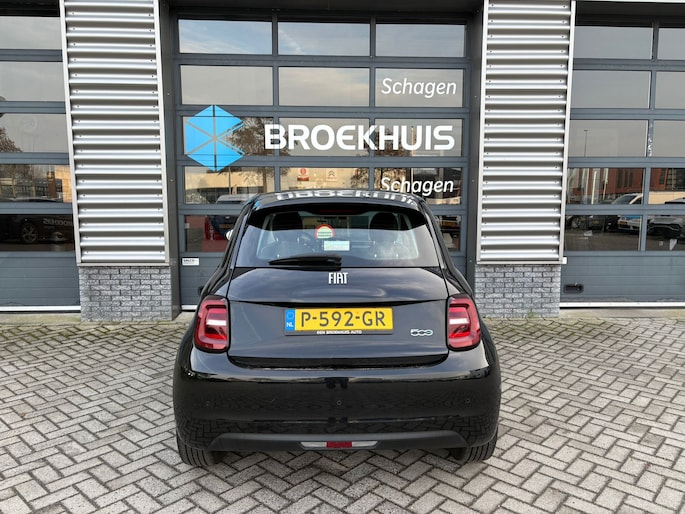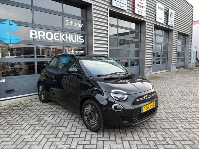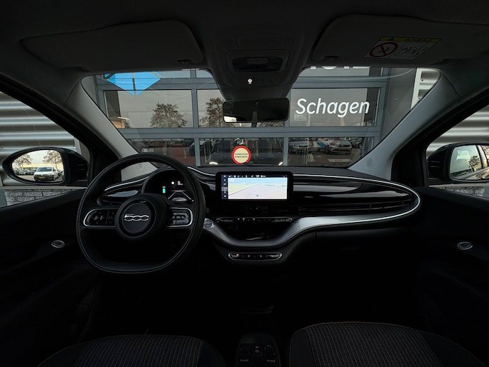 Druk het gaspedaal in en voel de fenomenale kracht van de elektromotor. In een elektrische auto rijdt u tegelijk dynamisch en ontspannen. U zult verrast zijn door de power van de elektromotor. En stil! Tot de uitrusting behoren ook 16 inch lichtmetalen velgen, LED-dagrijverlichting, LED-achterlichten en snelheidsafhankelijke stuurbekrachtiging. Praktisch, helder en uitermate handig is het digitale dashboard. Alle functies haarscherp in beeld! Via uw smartphone en Connected Services checkt u eenvoudig de belangrijke functies van de auto, overal en altijd. Kaartlezen is verleden tijd, dankzij het aanwezige full map navigatiesysteem. U verwacht natuurlijk automatische airconditioning in deze auto, en die is er dan ook. Met de audiobediening op het stuur schakelt u snel en veilig tussen de diverse functies van uw muziekinstallatie. En deze auto heeft ook DAB ontvangst, parkeersensoren achter, regensensor, cruise control, lederen stuur en boordcomputer als standaard uitrusting. De nieuwste veiligheidssystemen komen in deze Fiat 500 samen. In het instrumentarium kunt u bovendien de verkeersborden zien die u onderweg tegenkomt. Zo helpt deze Fiat u om veiliger te rijden. Het Lane-keeping systeem zorgt dat u mooi binnen de lijntjes blijft. Ongemerkt buiten de rijstrook komen is er niet meer bij. Op lange ritten voorkomt de vermoeidheidsassistent dat uw concentratie afneemt. In deze Fiat vinden we verder een brake assist en bandenspanningcontrolesysteem. Wanneer wilt u een proefrit maken? Neem contact op en we maken een afspraak voor een muisstille rit in deze elektrische droomauto!