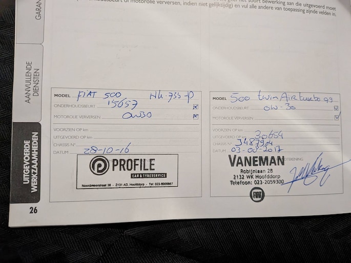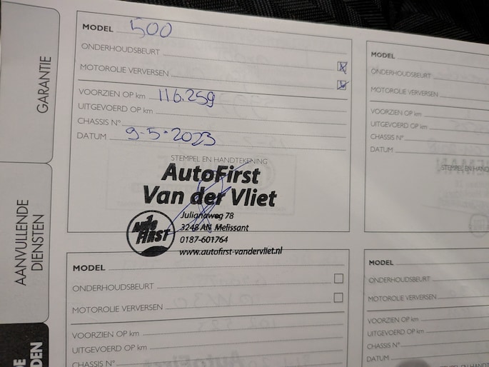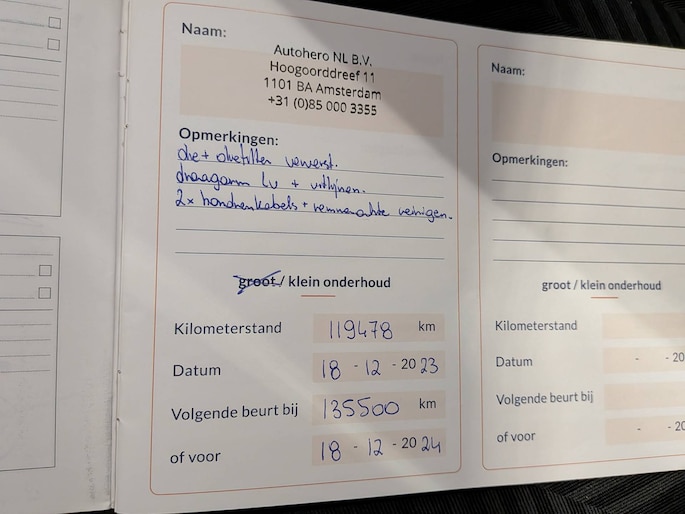 Onderhoudsboekjes: Aanwezig