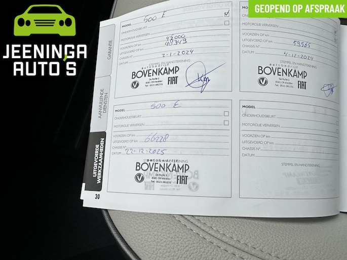 Hij is doordacht innovatief en duurzaam als geen ander: deze elektrische Fiat 500e in de unieke La Prima uitvoering biedt met zijn elektrische aandrijving een ongekende rijervaring. De fluisterstille elektromotor zorgt voor een serene rijervaring. Met het lederen interieur ervaart u direct het gevoel van luxe en comfort. Bij de rijke uitrusting horen ook 17 inch lichtmetalen velgen, LED koplampen, verwarmde voorstoelen, in delen neerklapbare achterbank, LED-achterlichten en snelheidsafhankelijke stuurbekrachtiging.
