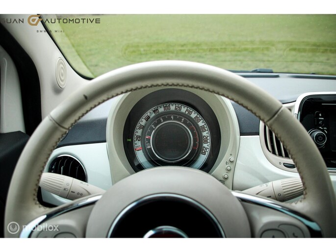 Ontspannen en zorgeloos autorijden, dat doet u met deze Fiat 500. Deze auto uit het bouwjaar 2016 heeft 119654 kilometer gelopen. De aandrijving van deze Fiat wordt verzorgd door een tweecilinder benzinemotor en een automatische transmissie. Het glazen panoramadak geeft ook doordeweeks een vakantiegevoel. Wat een licht en zicht! Bij de uitrusting van deze auto horen onder meer 15 inch lichtmetalen velgen, LED-dagrijverlichting, in delen neerklapbare achterbank en snelheidsafhankelijke stuurbekrachtiging.
