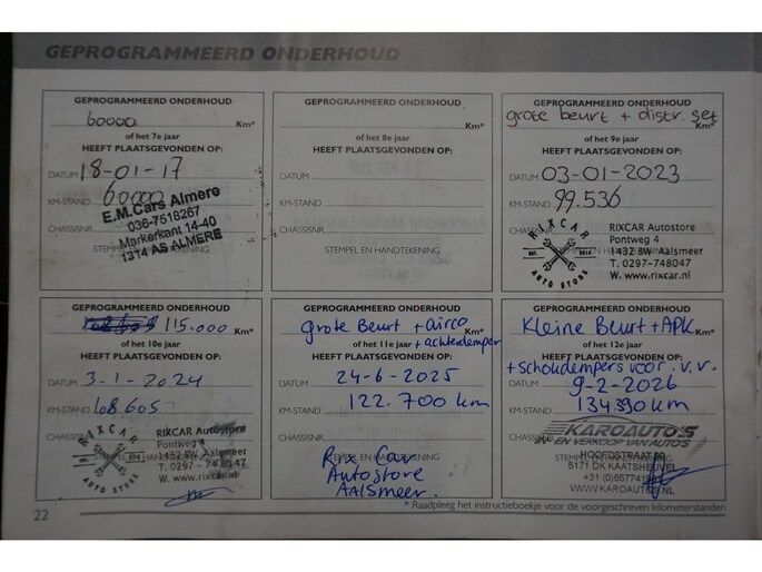 Recent een onderhoudsbeurt gehad bij ons bij 134.390 km, waarbij de schokdempers voor zijn vernieuwd.