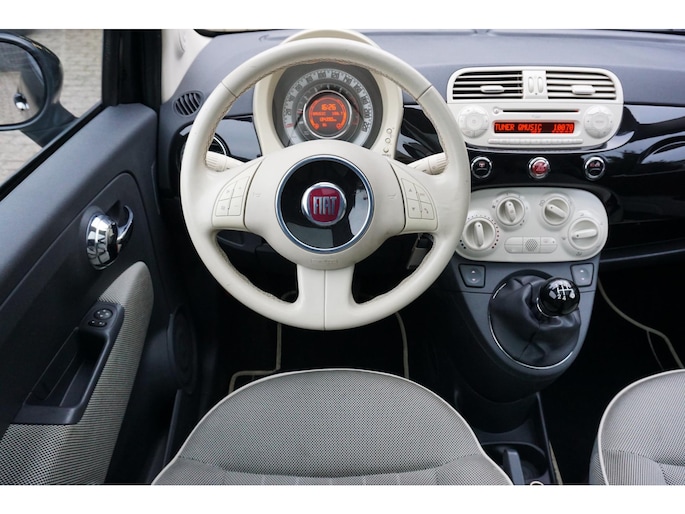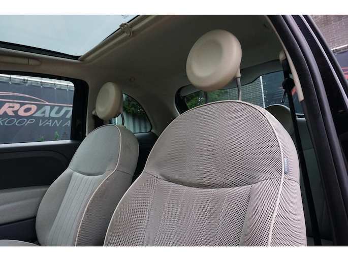 Nette en volledig onderhouden origineel Nederlandse Fiat 500 1.2 Lounge uitvoering voorzien van allerlei opties zoals; panoramadak, dagrijverlichting, airco, multimediasysteem met radio/usb/bluetooth/Blue&Me, multifunctioneel lederen stuurwiel en versnellingspook, elektrische ramen voor, elektrisch bedienbare spiegels, 16 inch lichtmetalen Fiat velgen met goede zomerbanden, centrale deurvergrendeling op afstand, stuurbekrachtiging, 2 sleutels en nog veel meer.