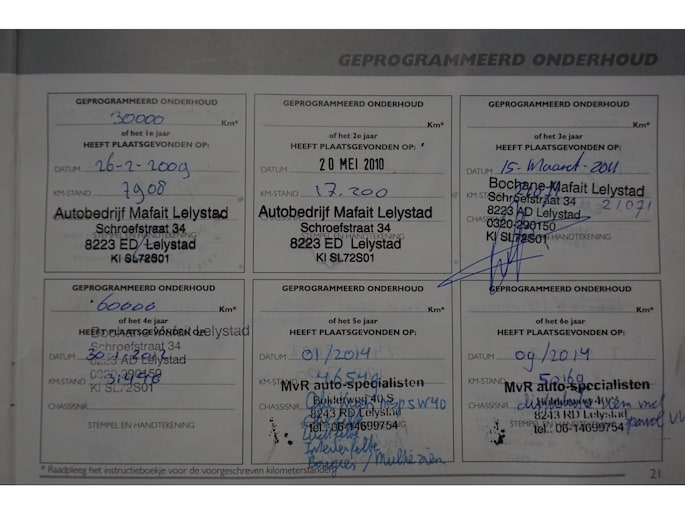 Onderhoudsboekjes: Aanwezig