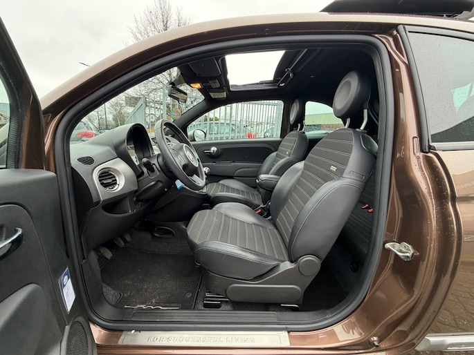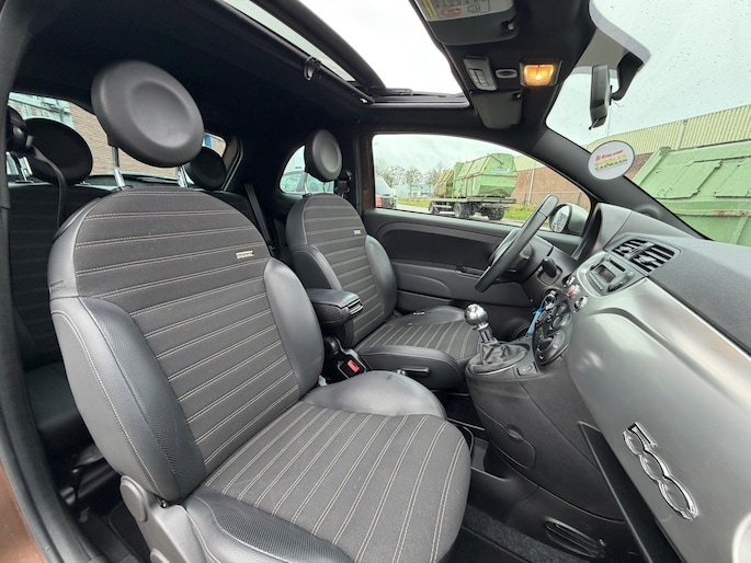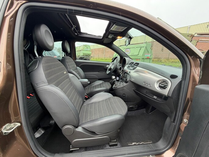 U rijdt gemakkelijk, comfortabel en zonder zorgen met deze Fiat 500. De aandrijving van deze Fiat wordt verzorgd door een tweecilinder motor en een handgeschakelde versnellingsbak. Deze auto verkoopt zichzelf. Ga maar na: een elektrisch bediend glazen panorama dak én een lederen interieur. Wat valt er dan nog te wensen? De gasontladingslampen van de xenonverlichting zorgen voor een krachtige en heldere lichtbundel. Brandstof verbruiken bij stilstaan? Dat is voorbij. Het start-stopsysteem schakelt de motor uit bij stoplicht, voor de brug en in de file. Ook is de auto voorzien van: 16 inch lichtmetalen velgen, extra getint glas en in delen neerklapbare achterbank.