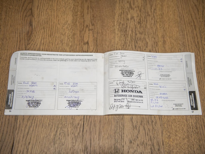 Onderhoudsboekjes: Aanwezig