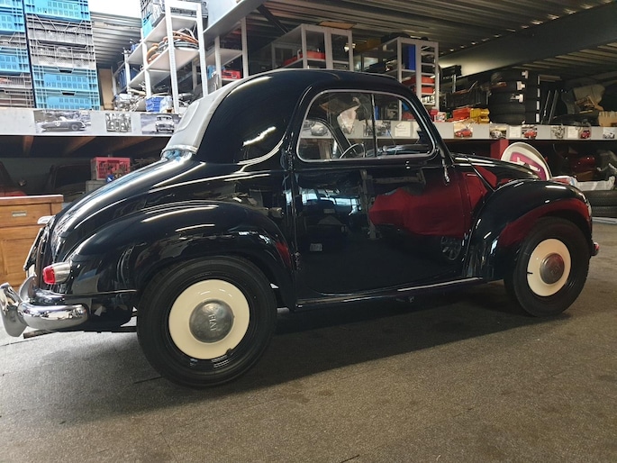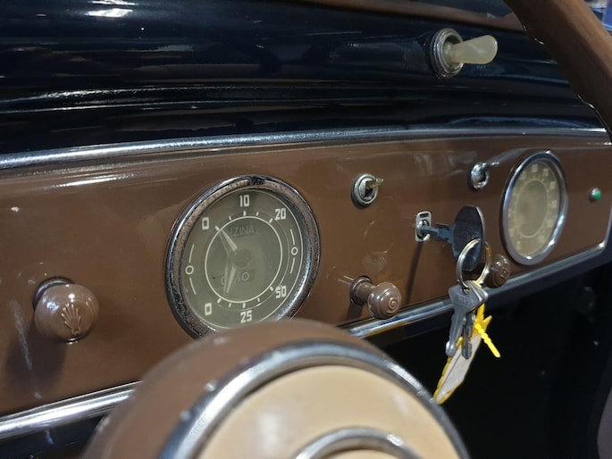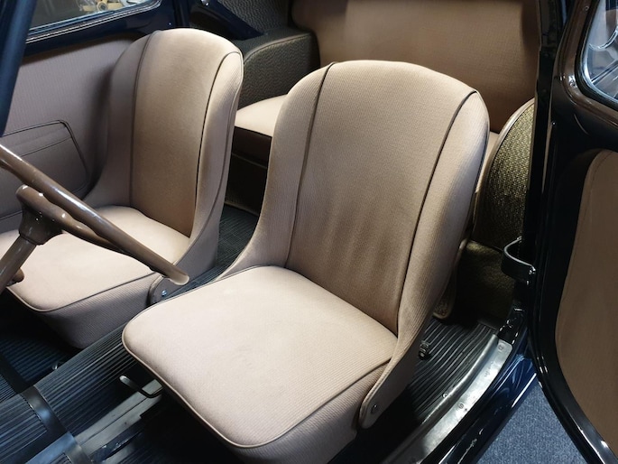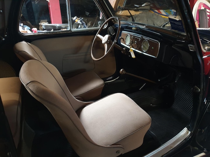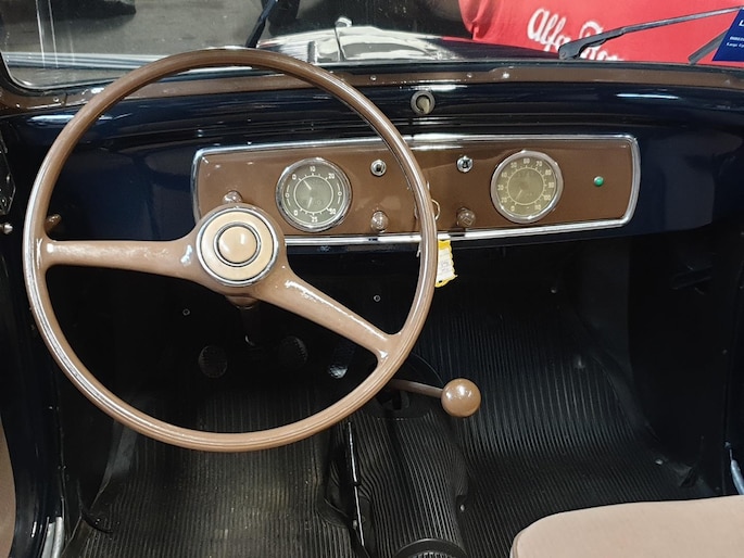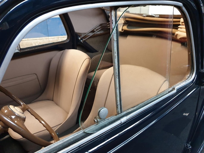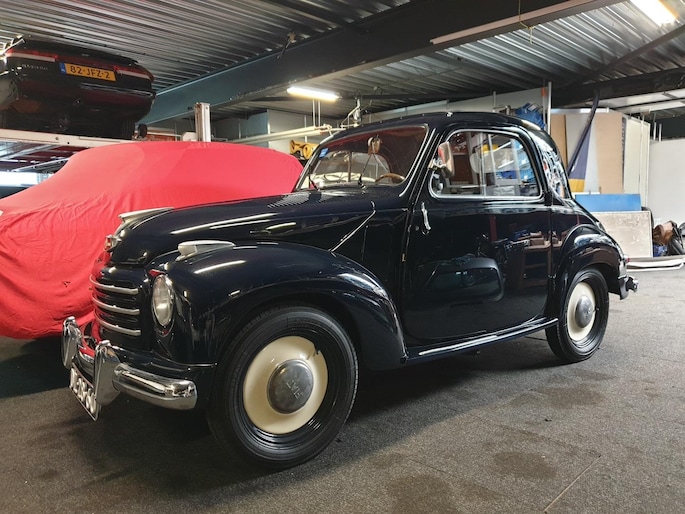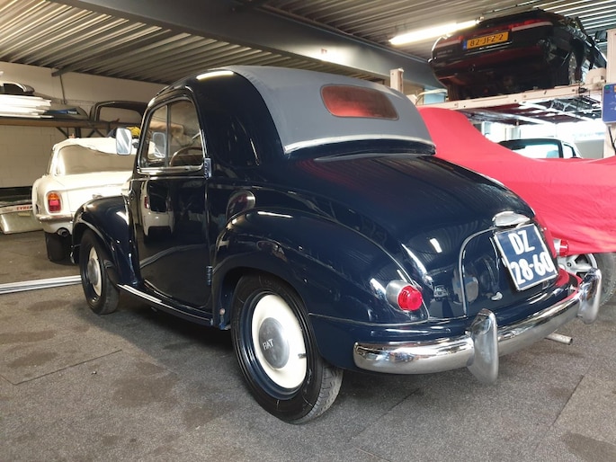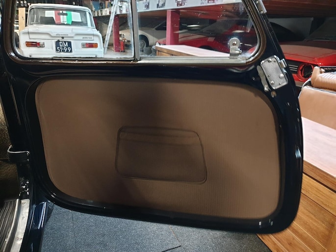 Fiat Topolino, dit vertederende autootje verkeert in superstaat. Zowel carrosserie (donkerblauw) als ook het interieur (bruin stof) zijn nagenoeg smetteloos. Oudere restauratie in Italië, met foto's gedocumenteerd. Deze semi cabrio, of zoals zo mooi in het Italiaans: trasformabile, heeft een achterbank waardoor je zelfs met vier personen kunt genieten van een ontspannen ritje.