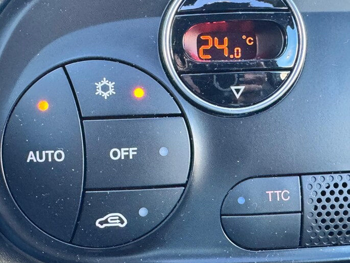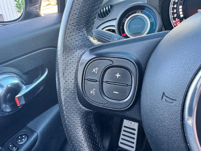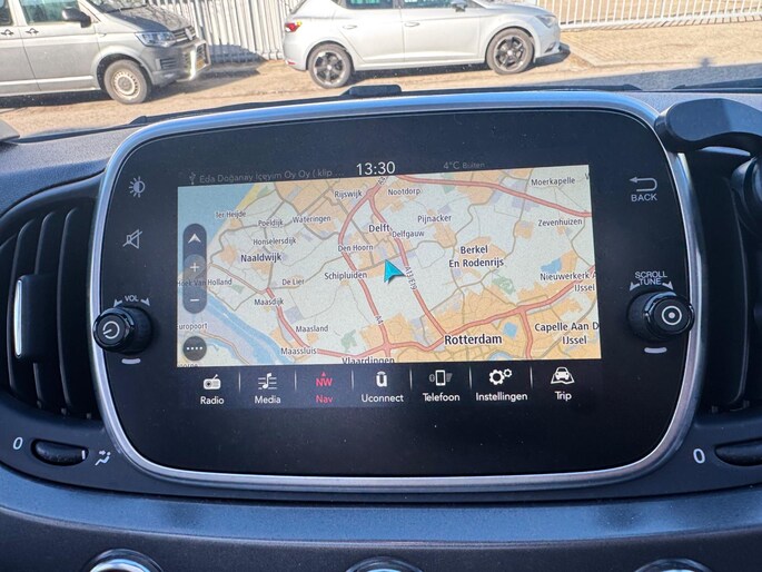 Altijd een deskundige gids aan boord, dankzij het navigatiesysteem. U verwacht natuurlijk automatische airconditioning in deze auto, en die is er dan ook. Met een druk op de knop verandert u het volume of het zenderstation met de audiobediening op het stuurwiel. Voor storingvrije digitale radio-ontvangst zorgt de DAB-ontvanger. U kunt bij het inparkeren natuurlijk niet aan alle kanten ogen hebben. Daarom is deze Fiat 500 C voorzien van parkeersensoren! De uitrusting van deze Fiat is met automatisch dimmende binnenspiegel, lederen stuur en centrale deurvergrendeling met afstandsbediening behoorlijk compleet.