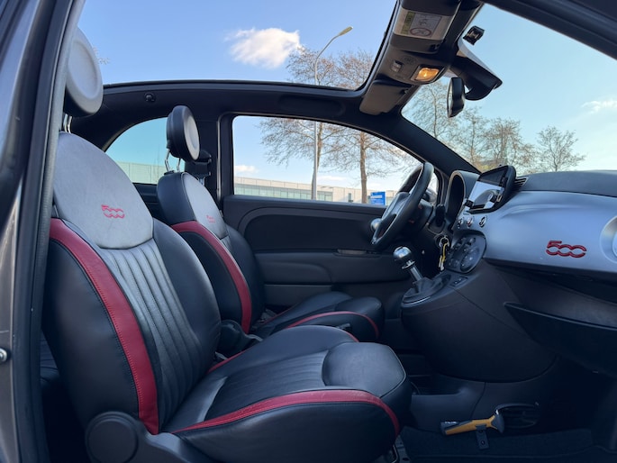 een goed onderhouden Fiat 500 C 0.9 TwinAir Turbo Lounge uit 2015. Deze stijlvolle cabriolet combineert het iconische Fiat-design met comfortabel en open rijplezier.