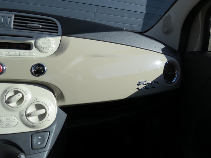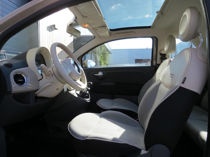 Fiat 500 1.2 Lounge Cappuccino 2014. Nette auto in unieke kleur met veel opties zoals o.a: Half stof half leder interieur, panorama dak, airco, bluetooth, 15 inch velgen, city stuur etc Deze Fiat verkeerd in nette staat. Onderhoudshistorie en 2 sleutels aanwezig