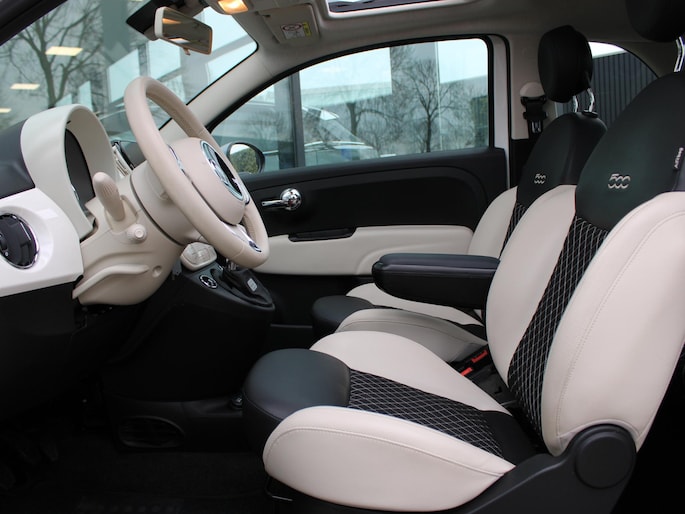 De vormgeving van deze Fiat 500 is stijlvol maar ingetogen en dat maakt meteen duidelijk dat u van deze auto pure kwaliteit mag verwachten. Met zijn benzinemotor en handgeschakelde zesversnellingsbak is dit een prima auto voor nog vele kilometers. Volop licht en ruimtelijk gevoel geeft het elektrische bediende glazen panoramadak. Bij de uitrusting van deze Fiat horen onder meer 16 inch lichtmetalen velgen, in delen neerklapbare achterbank en snelheidsafhankelijke stuurbekrachtiging.