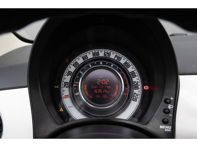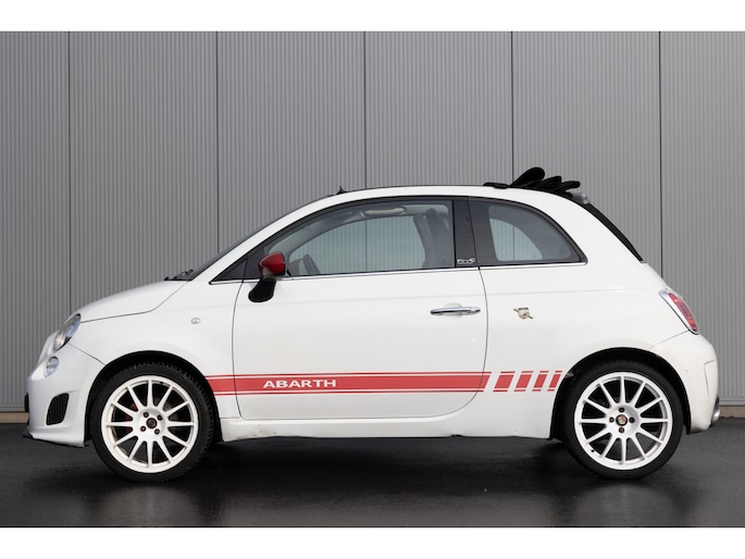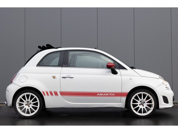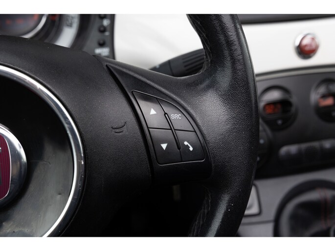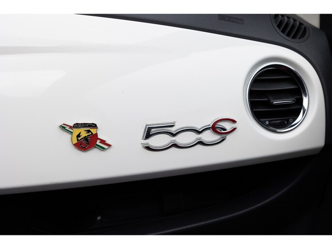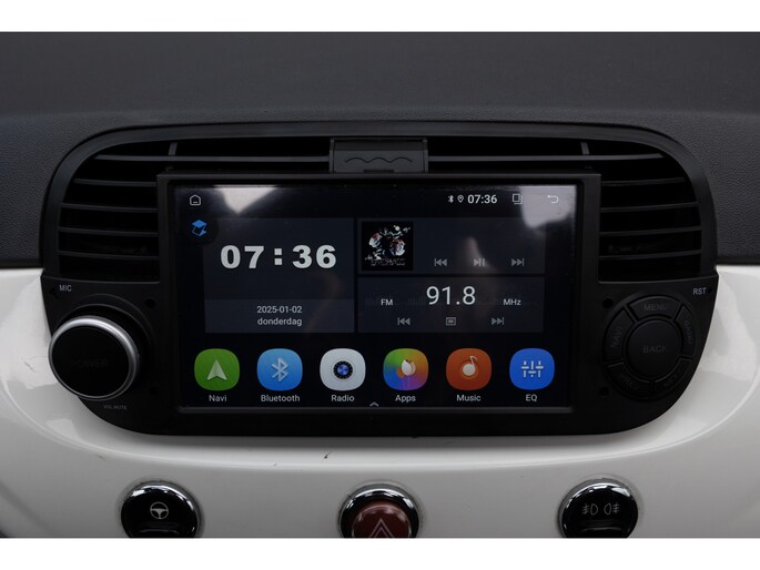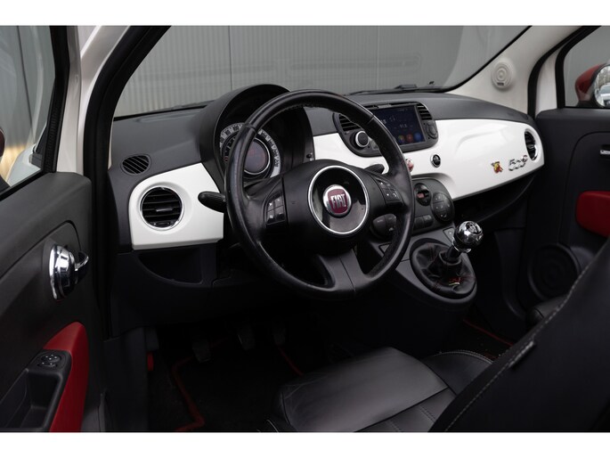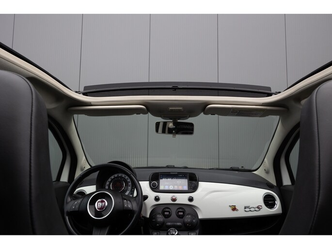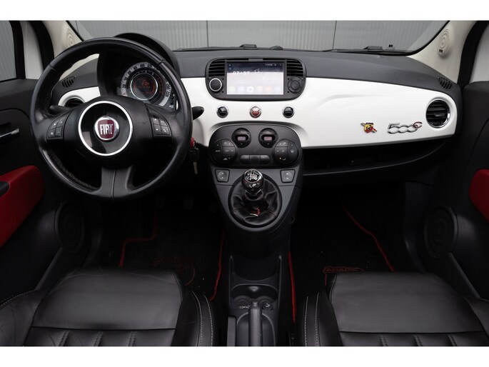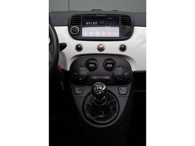 Fiat 500 Cabrio 1.2 omgebouwd naar Abarth Uitvoering. De Navigatie werkt via de telefoon op het multimedia scherm