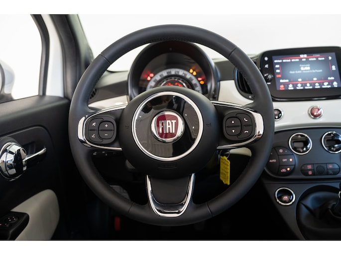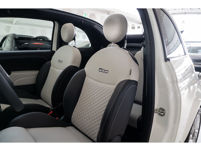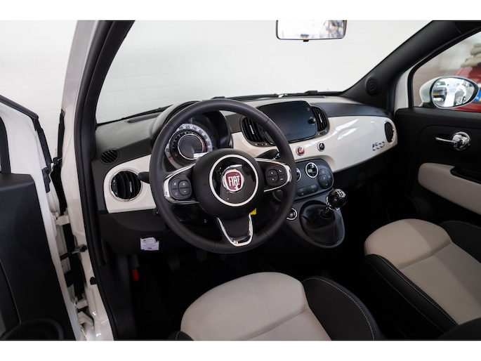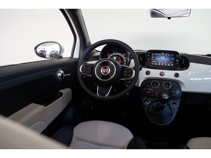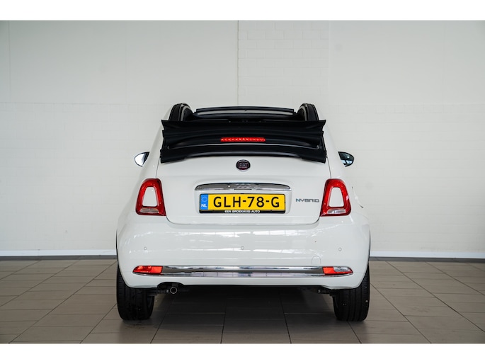 Stijlvol en veelzijdig, dat zijn misschien wel de belangrijkste kenmerken van de Fiat 500C. Dit exemplaar is bovendien voorzien van verschillende systemen die het autorijden aangenamer en veiliger maken. Elektrisch rijden of toch benzine? Voor allebei is iets te zeggen. Daarom biedt de hybride motor van deze Fiat 500C de keus. Met het grote glazen panoramadak geniet u van maximale lichtinval. Tot de voorzieningen van deze auto behoren 15 inch lichtmetalen velgen, LED-dagrijverlichting en snelheidsafhankelijke stuurbekrachtiging. Dankzij Connected Services weet u precies waar uw auto geparkeerd staat. Ook andere functies, zoals bandenspanning en brandstofniveau, zijn via de app altijd onder handbereik. Onderweg kunt u veilig genieten van het audio-installatiesysteem met dab-radio. Want in deze Fiat bedient u het vanaf het stuurwiel. Het comfort wordt verhoogd door de aanwezige automatische airconditioning. Parkeersensoren helpen u tijdens het in- en uitparkeren. Natuurlijk is een complete auto als deze ook voorzien van sensoren die de omgeving in de gaten houden. Deze Fiat heeft niet alleen een automatisch inschakelbare verlichting aan boord, maar ook een regensensor. En deze auto heeft ook cruise control, lederen stuur, centrale deurvergrendeling met afstandsbediening en boordcomputer als standaard uitrusting. De nieuwste veiligheidssystemen komen in deze Fiat 500C samen. Keep your lane? Het Lane-keeping systeem zorgt er automatisch voor. Een belangrijke bijdrage aan de veiligheid in deze auto is de vermoeidheidsherkenning, die waarneemt wanneer de bestuurder tekenen van vermoeidheid vertoont. In een gevaarlijke situatie is een zo kort mogelijke remweg van levensbelang. De Brake Assist zorgt dat u dan maximaal in de ankers gaat. Indien u interesse heeft in deze Fiat, zetten we hem graag klaar voor een proefrit. We horen graag van u, mailt of belt u ons meteen?