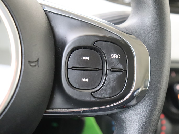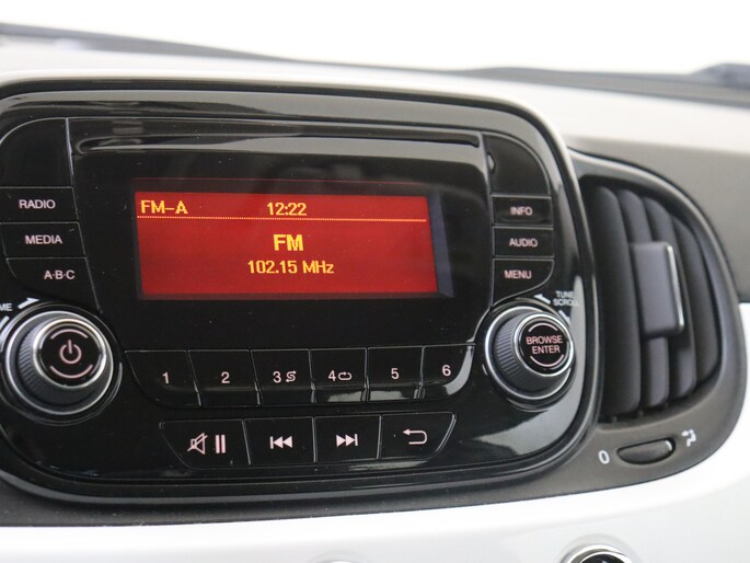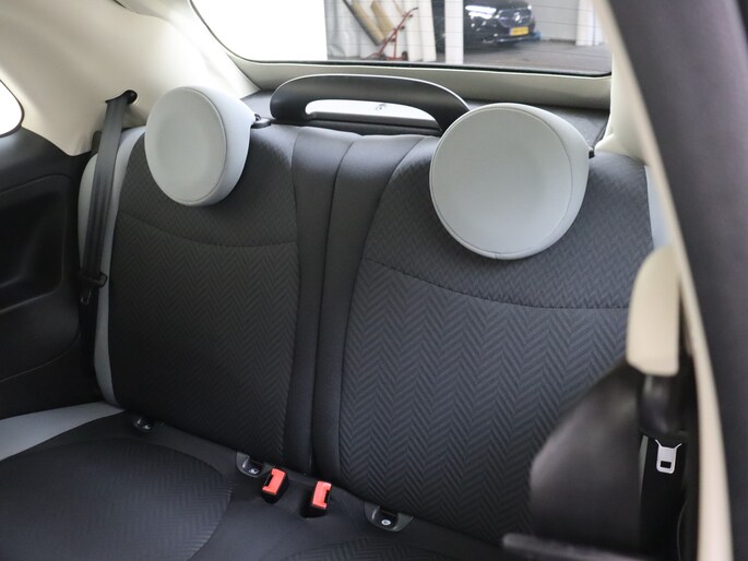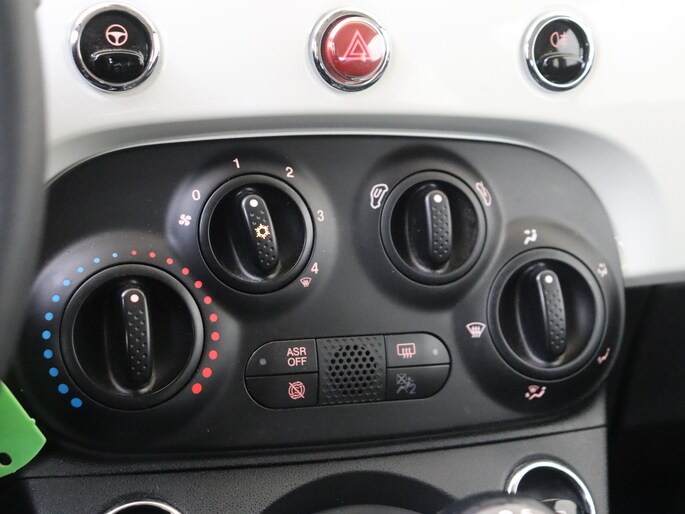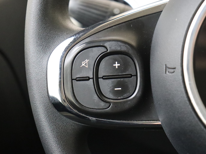 Tijdens de rit bedien je het audiosysteem met de knoppen op het stuur. Aan boord van deze Fiat 500 C is een achteropkomend verkeer waarschuwing voor extra veiligheid. Vanzelfsprekend is deze auto ook van airconditioning voorzien. De Fiat is standaard voorzien van: centrale deurvergrendeling met afstandsbediening en verstelbaar stuur.
