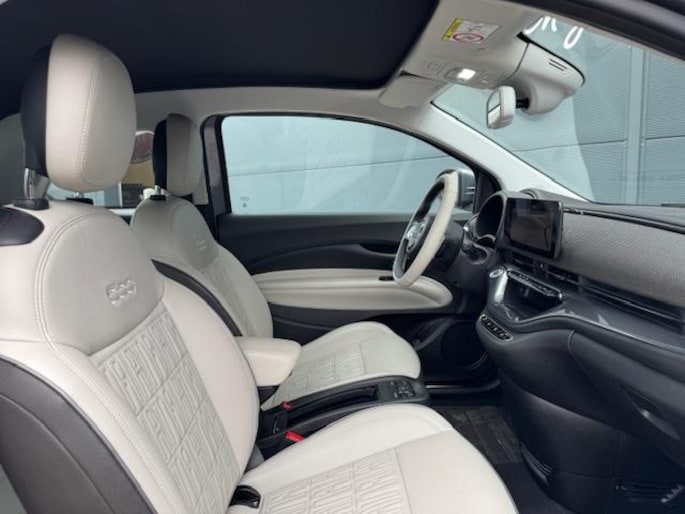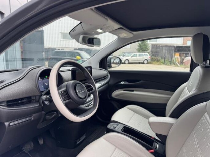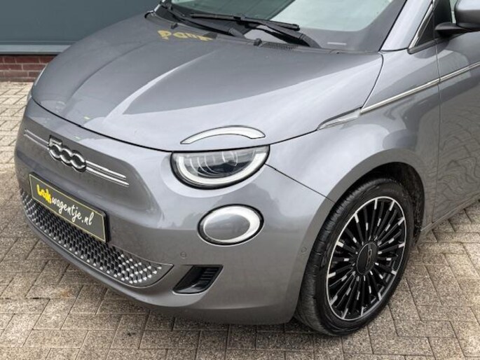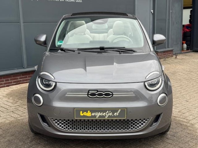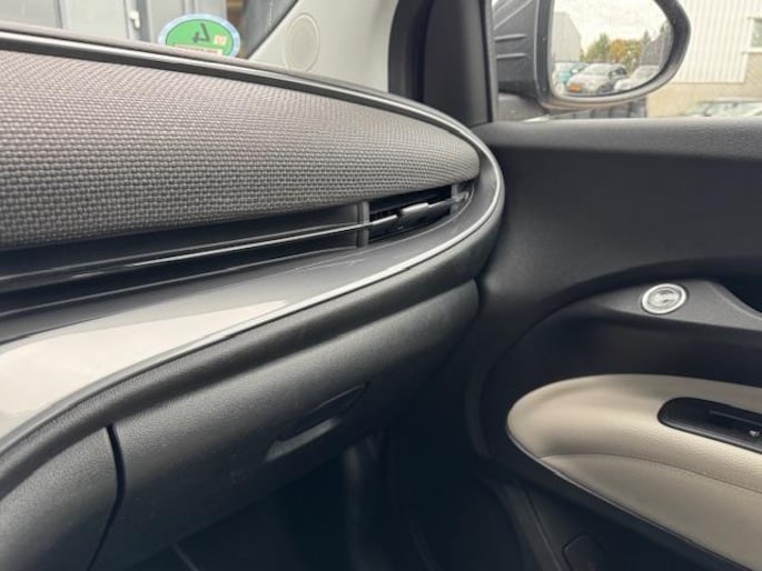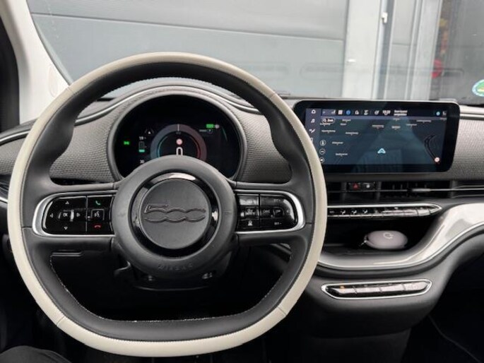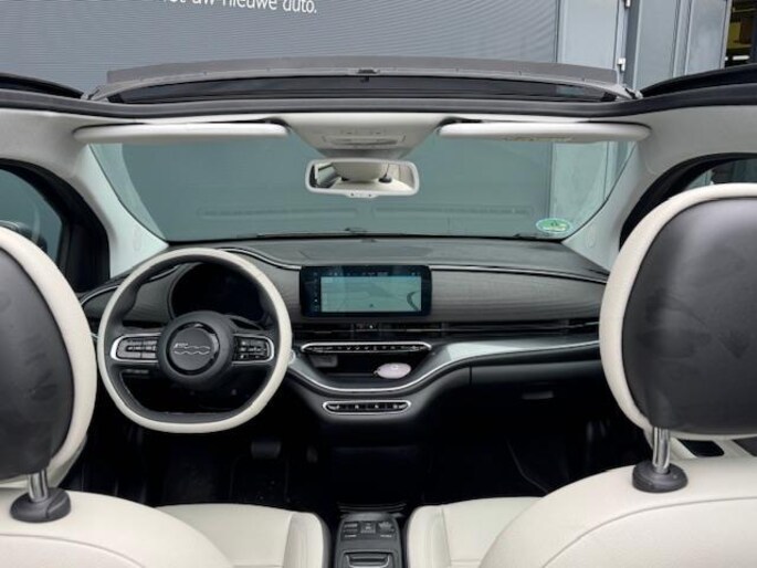 Aan alles is te zien dat de La Prima het topmodel van de elektrische Fiat 500 is. Hij zit bomvol luxe, beschikt over alle opties en is werkelijk schitterend. Om de auto mooi te houden is hij voorzien van parkeersensoren vóór en achter plus een parkeercamera. Zo wordt krasvrij parkeren een fluitje van een cent! Op de snelweg helpt de adaptieve cruise control je om de juiste afstand tot je voorganger te bewaren. Automatisch - geen omkijken naar. De navigatie én het sublieme carplay wijzen je intussen feilloos de weg, terwijl climate control je fris houdt. Wil je nog méér frisse lucht? Met een druk op de knop open je het elektrische vouwdak van deze fantastische cabrio.