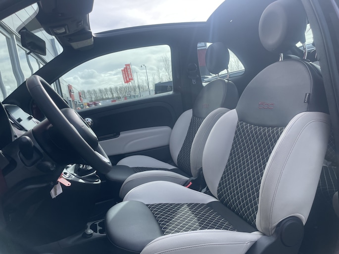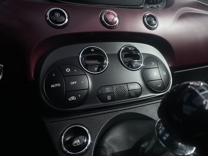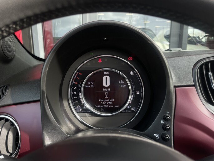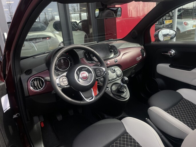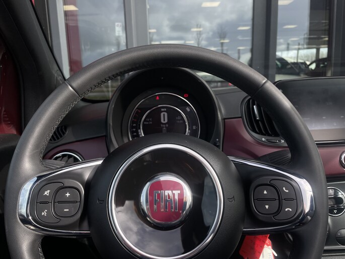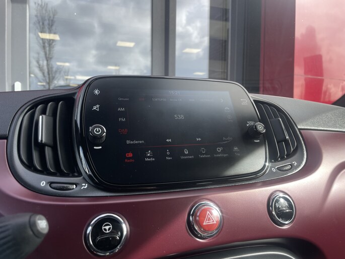 Radarsensoren aan de achterkant van de auto zorgen voor een achteropkomend verkeer waarschuwing als de afstand tot het verkeer achter te klein wordt. Automatische airconditioning verwarmt of koelt het interieur met een druk op de knop. Alle belangrijke audiofuncties zijn regelbaar zonder het stuur los te laten. De knoppen bevinden zich onder uw vingers. De DAB-ontvanger zorgt voor een ruime keuze uit digitale radiozenders en een kristalheldere geluidsweergave. Parkeerplekken worden er niet ruimer op. Maar met de aanwezige parkeersensoren krijgt u deze Fiat 500 C zonder problemen op z'n plaats. U bent in deze Fiat ook voorzien van cruise control, lederen stuur en centrale deurvergrendeling met afstandsbediening.