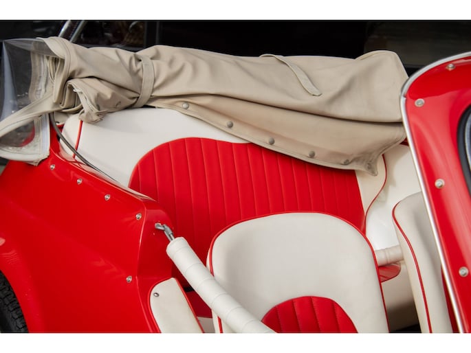 The car is fitted with a fully foldable synthetic soft top. Practical when required — yet, as with any true Jolly, it is at its absolute best enjoyed completely open.