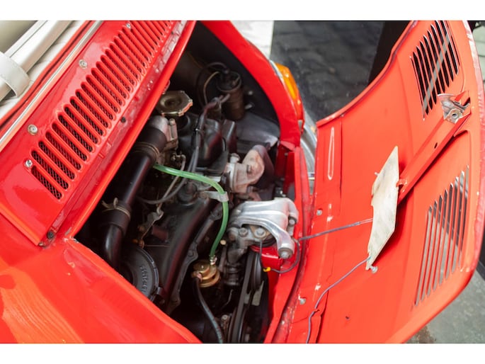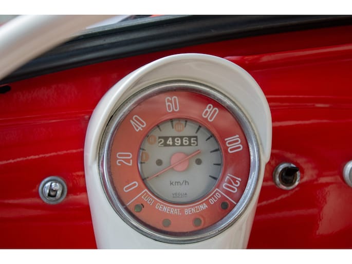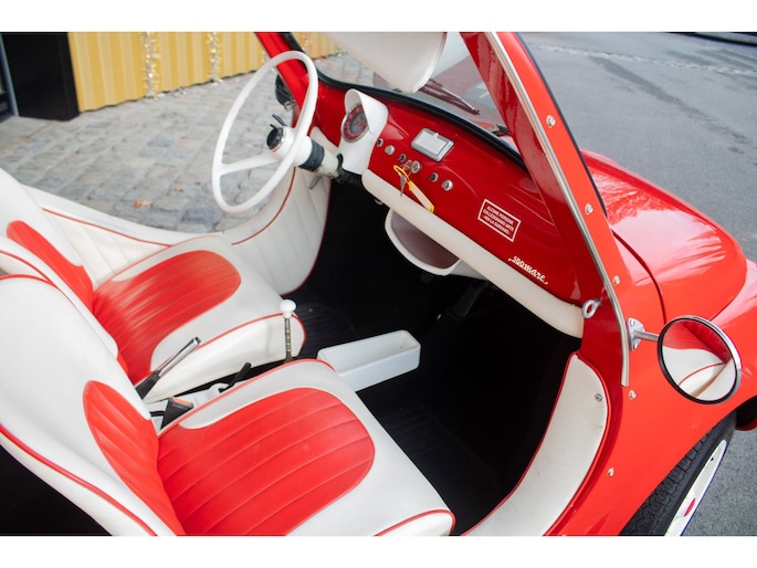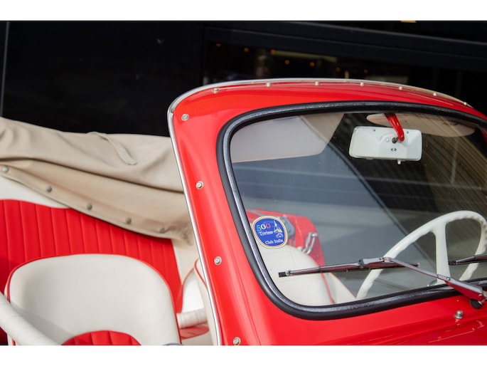 Lackiert in kräftigem Rot und kombiniert mit einem rot-weißen Lederinterieur, versprüht diese Jolly pure 60er-Jahre-Atmosphäre. Die cremefarbenen Felgen setzen einen harmonischen Kontrast und unterstreichen die klassische Linienführung. Der offene Charakter prägt das Fahrerlebnis — leicht, entspannt und stilvoll.