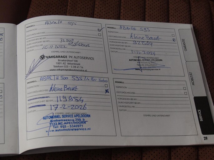 - Onderhoudsboekje (fysiek)