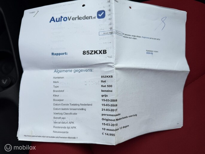 Kortom: een zeer nette en goed onderhouden auto met een mooie kleur en uitvoering. Bent u op zoek naar een zuinige en stijlvolle auto met een leuke uitstraling, comfort en relatief weinig kilometers voor zijn leeftijd? Dan is deze Fiat 500 zeker een goede keuze.