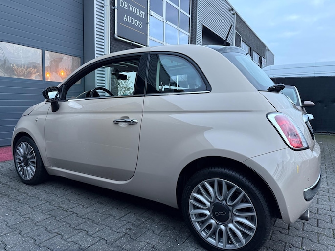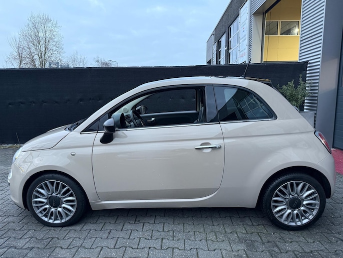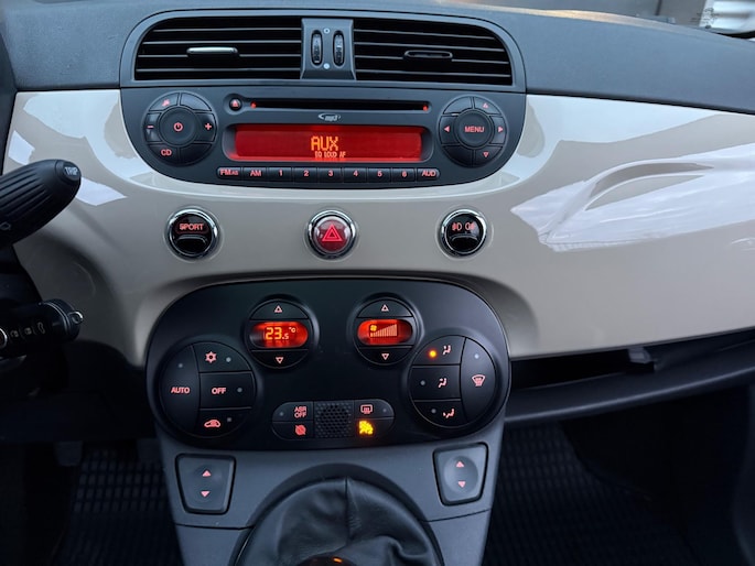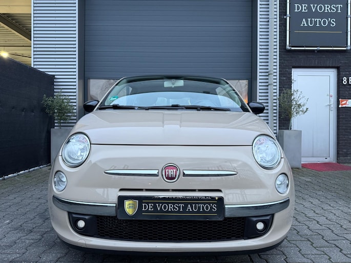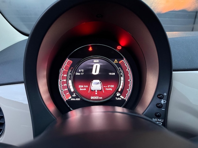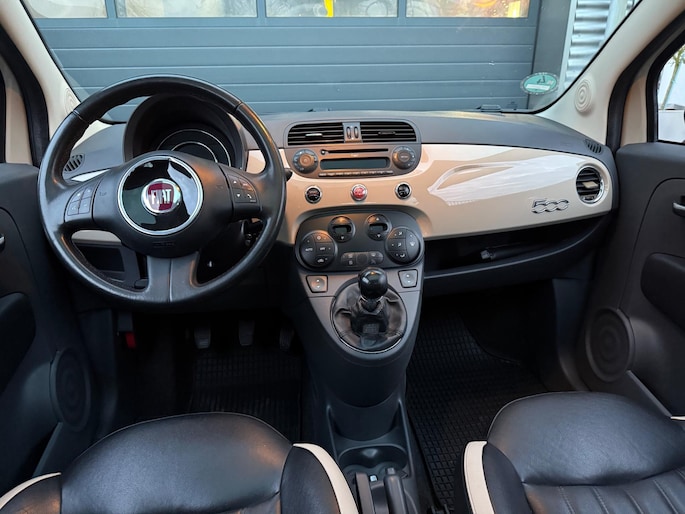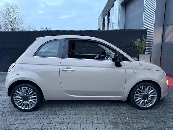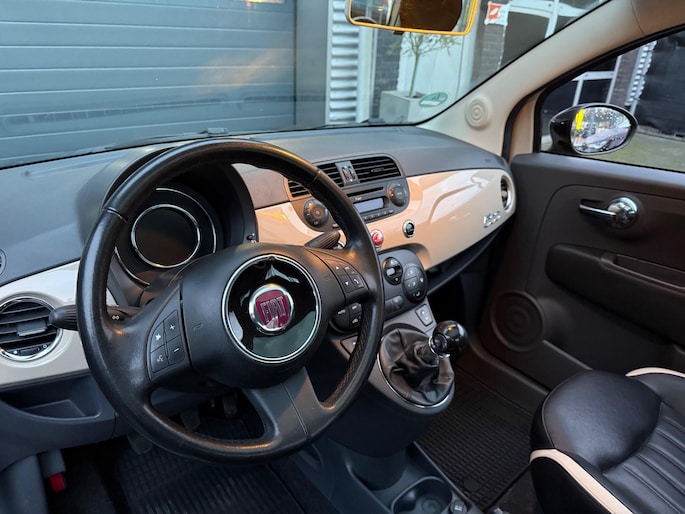 Fiat 500 in de exclusieve cappuccino-kleur, een zeldzame uitvoering die je maar weinig tegenkomt. De auto is stijlvol uitgerust met luxe lederen stoelen, een panoramadak en een moderne digitale teller. Compact, elegant en compleet — perfect voor wie nét iets anders wil dan de standaard Fiat 500.