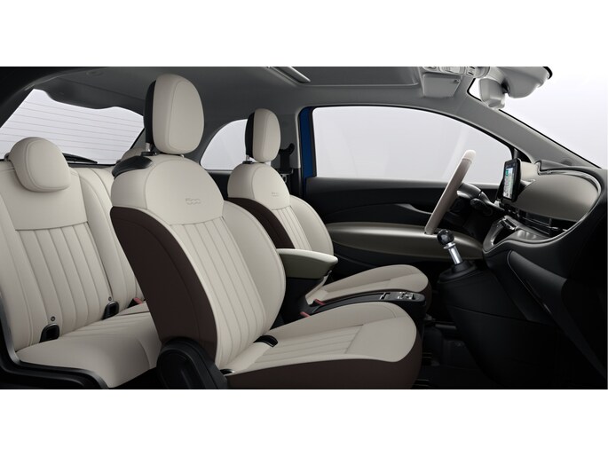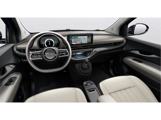 Het karaktervolle uiterlijk van de Fiat 500 e doet niets af aan het feit dat dit een comfortabele en bijzonder praktische auto is. Het gaat hier om een nieuwe auto, hij is nu direct leverbaar. Heb jij een vlotte rijstijl? Dan is deze Fiat met zijn zuinige maar pittige motor geknipt voor jou. 's Winters op pad gaan kan een behoorlijke uitdaging zijn. Daarom is deze Fiat 500 e voorzien van weldadige verwarmbare voorstoelen. Geniet van het uitzicht naar buiten door het riante glazen panoramadak. Ook is de auto voorzien van: 17 inch lichtmetalen velgen, Full LED koplampen, donker getint glas achter, in delen neerklapbare achterbank, LED-achterlichten en snelheidsafhankelijke stuurbekrachtiging.
