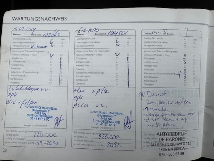Onderhoudsboekjes: Aanwezig