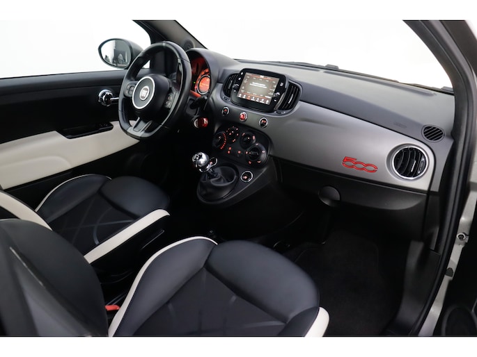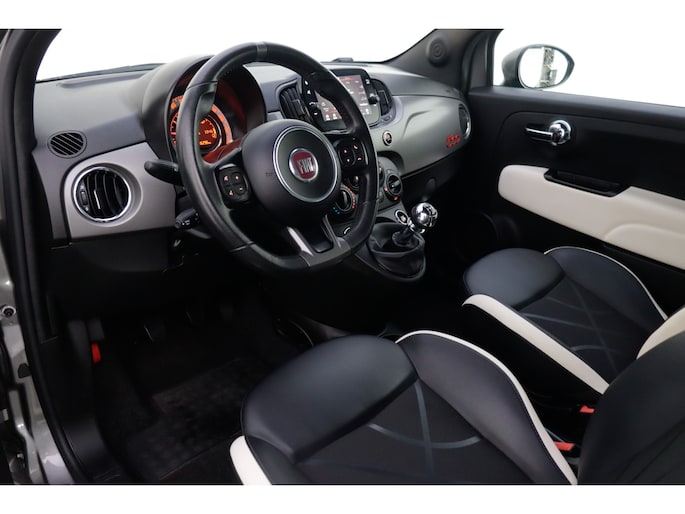 Alle technologie in de Fiat 500 is er op gericht om uw rit veilig en gemakkelijk te laten verlopen. Dit mooie exemplaar komt uit 2018. Onder de motorkap ligt een zuinige tweecilinder benzinemotor. Met zijn lederen bekleding is deze auto comfortabel en stijlvol. De sportstoelen geven u veel zitsteun. U wordt in deze auto ook getrakteerd op 15 inch lichtmetalen velgen, LED-dagrijverlichting, donker getint glas achter, in delen neerklapbare achterbank en snelheidsafhankelijke stuurbekrachtiging.